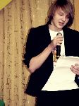 Тема любви была продолжена выступлением первокурсницы Натальи Рекичинской (семинар Олеси Николаевой). Резкий, рубленый ритм стихов   выплевывал в лицо  правду о драматизме и жестокости любви и одиночества, о чувствах на грани истерики:
